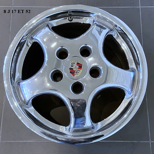 Produktinformationen "Chrom-Cup-Alufelgen 7 + 8 J 17, original, passend für Porsche 964"