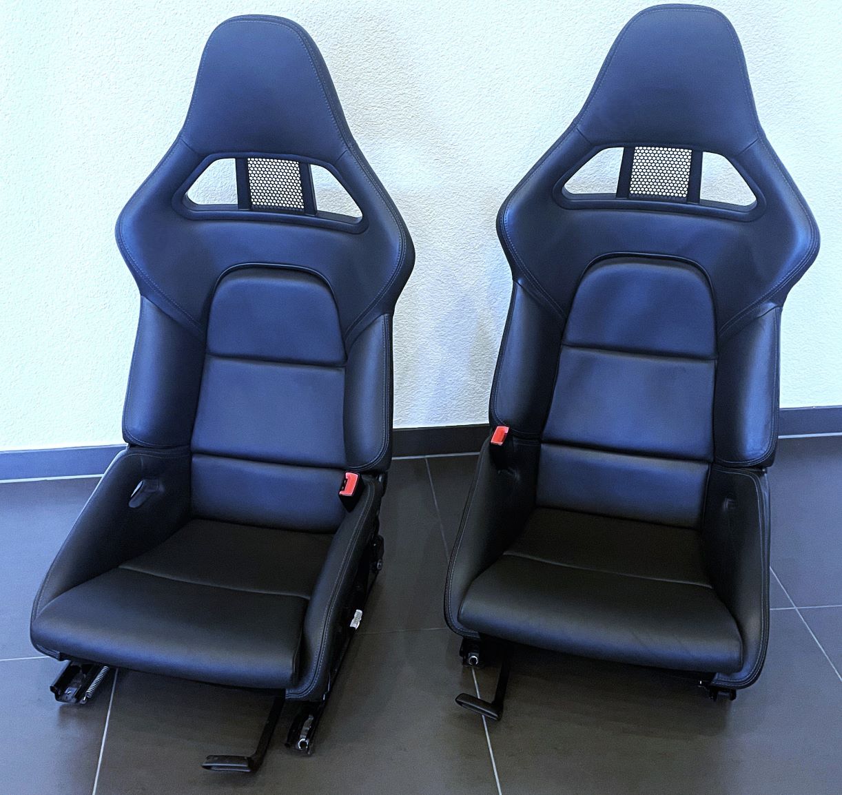 Preis für 1 Paar, links und rechts, originale Porsche-Sitze (kein Nachbau), Echtleder schwarz (Original-Bezug) mit silber-grauer Naht, klappbare Carbon-Rückenlehnen (ohne Kratzer), mit integriertem Thorax-Airbag und manueller Längsverstellung, diese Sitze sind kaum noch zu bekommen, Neupreis bei Porsche : 24.000,- Euro, keine Beschädigungen, guter gebrauchter Zustand, im Kundenauftrag abzugeben, wegen dem Gewicht und Wert ist kein Versand möglich, nur Abholung und Barzahlung bei unserem Kunden oder bei uns nach Terminvereinbarung, der Verkauf läuft nicht über uns / deswegen ist auch keine Ausstellung einer Rechnung oder Ausweisung der Mwst. möglich, der angegebene Preis ist der Endpreis für einen Privatverkauf, Preisrabatt eventuell möglich / Anfragen bitte über email
